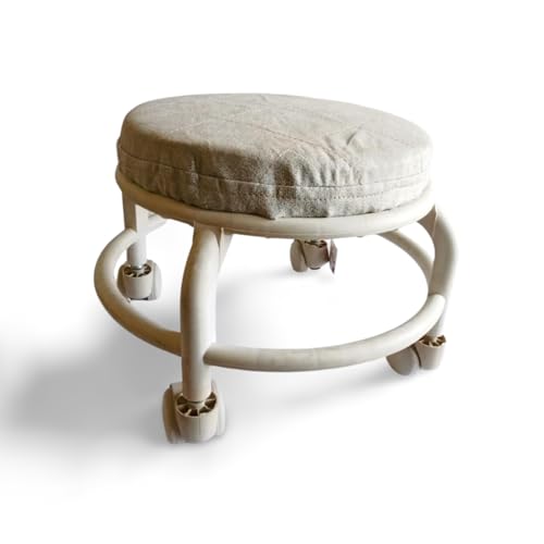 مقعد دائري صغير من ايمو شديد التحمل قابل للتحريك 360 درجة بعجلات دوارة مريح ومقاوم للماء من جلد البولي يوريثين للمكتب ومراكز اللياقة البدنية والصالونات والمنتجعات الصحية وغرفة المعيشة (ابيض)
