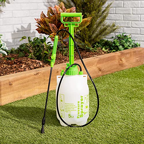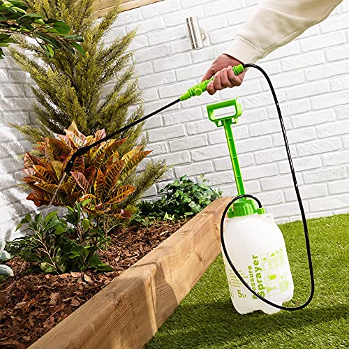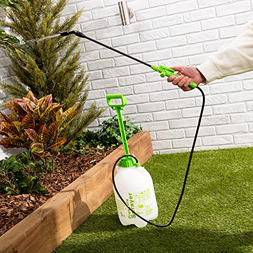 - [ذراع ربط وصمام أمان] بخاخ الضغط بسعة 5 لتر مزود بذراع رش طويل للوصول بفعالية إلى الأماكن الصعبة. يحتوي كل بخاخ على صمام أمان مدمج.