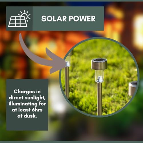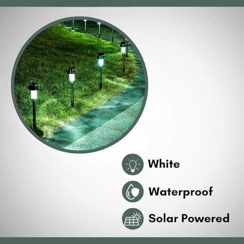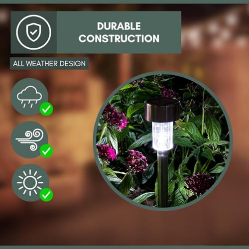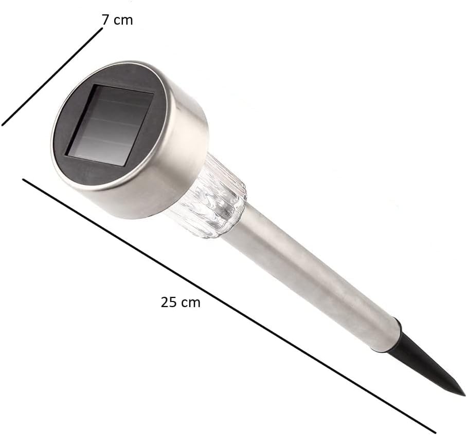 - 10 قطع من مصابيح الحديقة الشمسية - يبلغ مقاسها حوالي 25 سم × 7 سم × 7 سم، هذه المصابيح الخارجية الشمسية مصنوعة بلمسة نهائية من الستانلس ستيل وتتميز بمصابيح LED بيضاء ساطعة. باستخدام مواد عالية الجودة، مصابيح الحديقة الخارجية هذه مقاومة للماء وتدوم طويلاً.