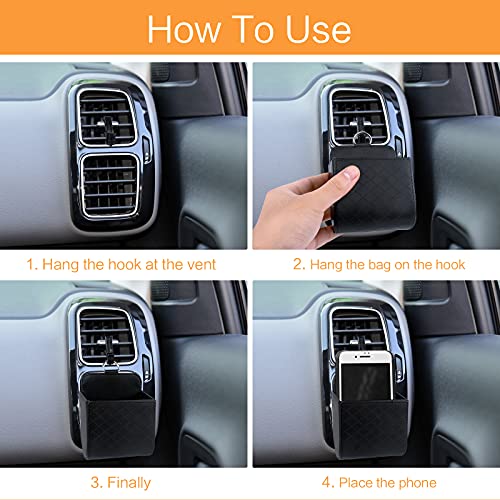 - 【جلد صناعي متين】: تُصنع شنطة التخزين المعلقة في فتحة التهوية من مادة الجلد الصناعي الفاخر التي تعد مقاومة الاهتراء وطول الاستخدام وعديمة الرائحة بملمس مريح ومتين. حيث يمكن أن توفر استخدامًا طويلاً من أجلك. كما أن مادة الجلد الصناعي سهلة التنظيف، ما عليك سوى استخدام قطعة قماش صغيرة للتنظيف بالمسح. الأمر الذي يوفر الكثير من المجهود.