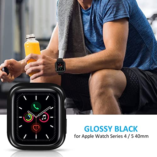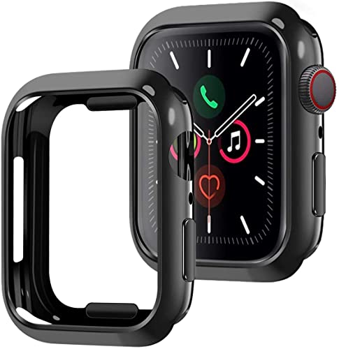 جراب تينسيا لساعة ابل ووتش 7 45 ملم من قطعتين رفيع للغاية ومصنوع البولي يوريثين الحراري المرن ومضاد للصدمات وشفاف حماية متوافق مع ساعة اي فقط اسود