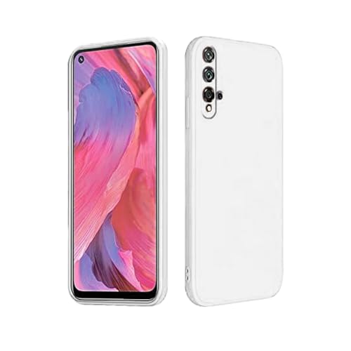 جراب حماية خلفي متوافق مع هواوي نوفا 5T مصنوع من جل السيليكون الناعم والمطاط مضاد للصدمات بلمسة نهائية غير لامعة وبطانة داخلية من القماش مع حماية للكاميرات (ابيض)