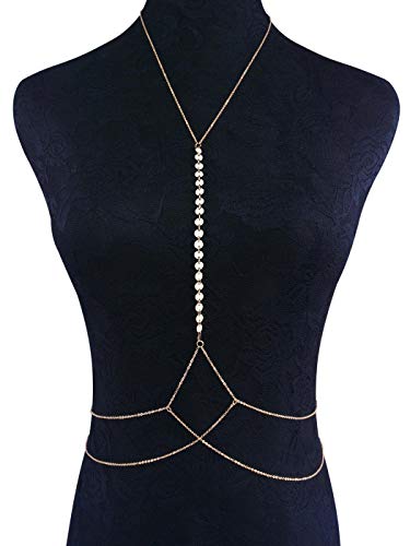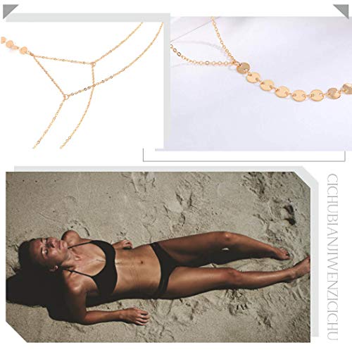 سلسلة حمالة صدر ذهبية للخصر والبطن مزينة بالترتر بطابع بوهو من يوكاوي للنساء والفتيات