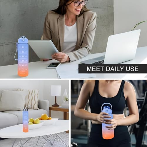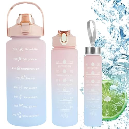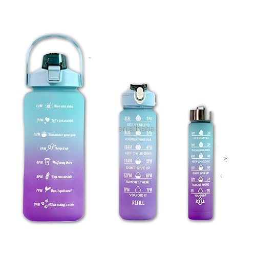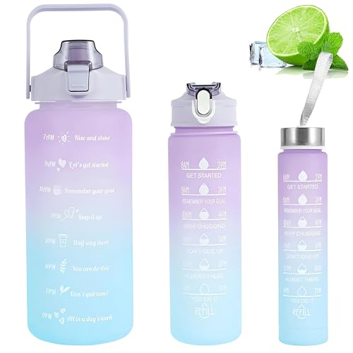 زجاجة مياه بعلامات تحفيزية مع شفاطة، مقاومة للتسرب، خالية من مادة بيسفينول أ، مثالية للتخييم والسفر وصالة الألعاب الرياضية والمدرسة، سعة 2 لتر، تتضمن 3 قطع بأحجام مختلفة