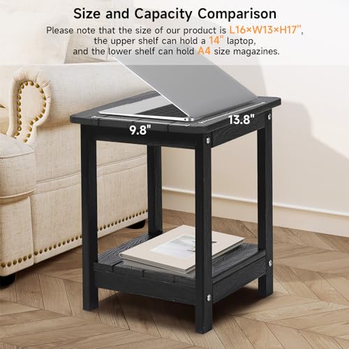 طاولة جانبية اديرونداك للاستخدام الخارجي من اونبريل للفناء مع مساحة تخزين مقاومة للطقس وحمام السباحة والشرفة والحديقة أسود البوليسترين