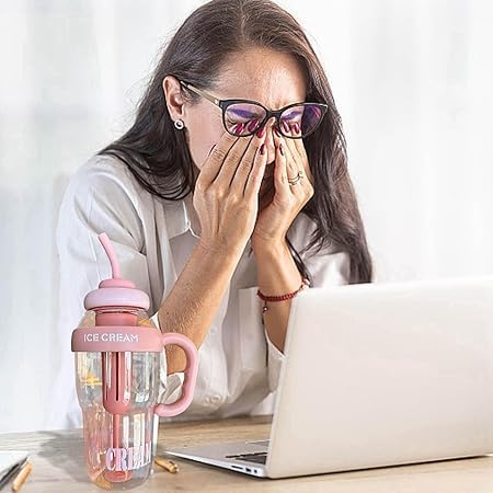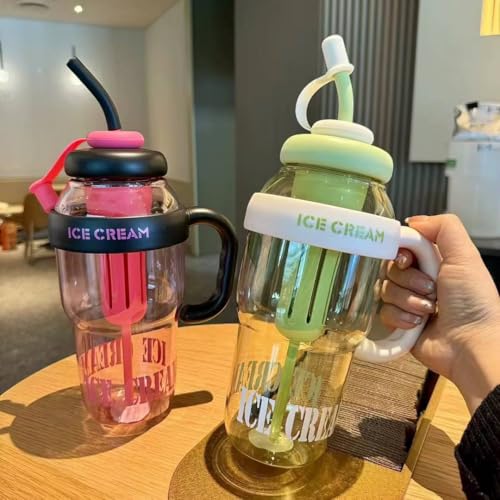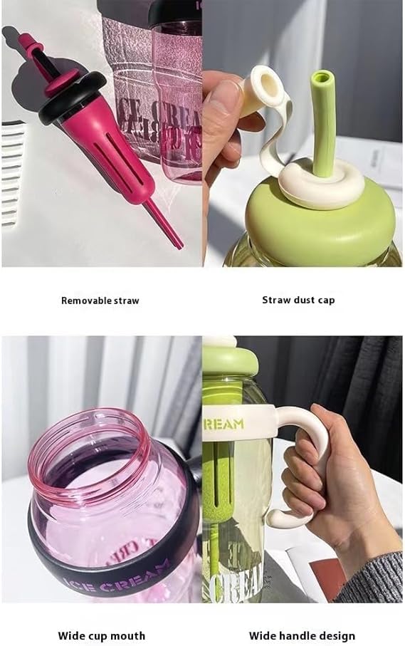زجاجة مياه بسعة كبيرة مع شفاطة ومقبض لطيف، لون عشوائي، قطعة واحدة