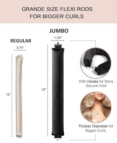 أداة تجعيد الشعر جامبو بدون حرارة لقضبان الشعر الطويل، شريط رأس لتمويج الشعر بدون حرارة، بكرات شعر طويلة لتجعيد الشعر الطويل للنساء (أسود)
