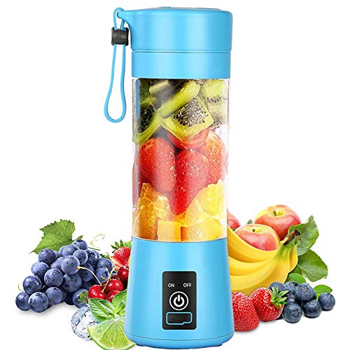 خلاط فواكه كهربائي محمول مع 6 شفرات بحجم شخصي صغير قابل لاعادة الشحن بمنفذ USB مناسب للمنزل والتنقل وحفلات الشواء (موديل gzj1، لون ازرق)، 175.0 واط، من زدبين