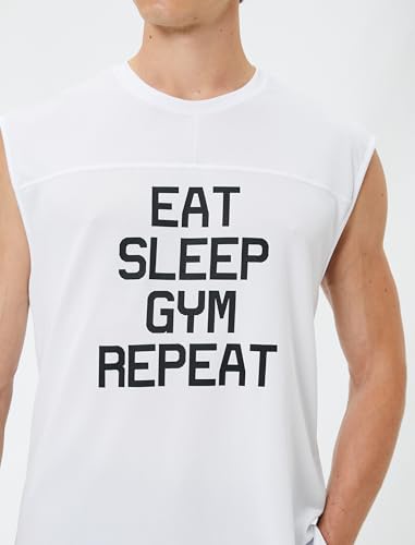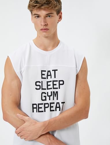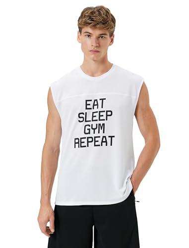 KOTON mens Slogan Printed Sleeveless Crew Neck Sport Tanktop