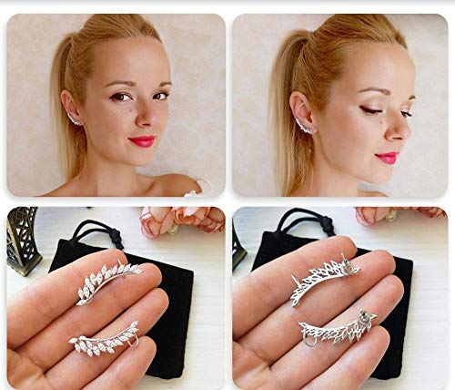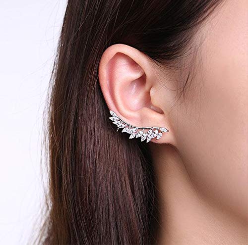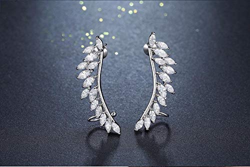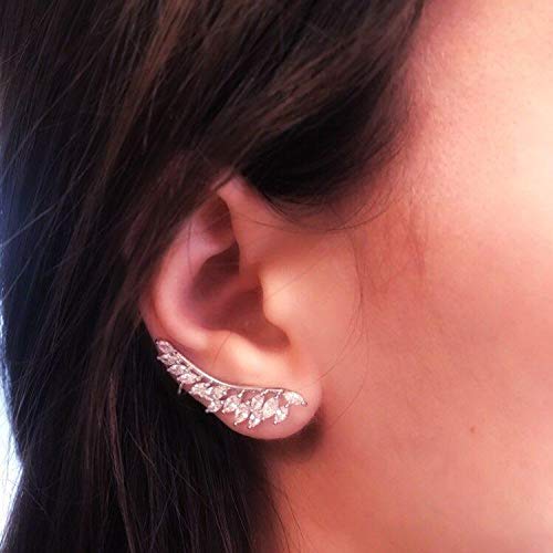 حلق شكل ريشة مطلي بالذهب الأبيض، متعدد الألوان، للأنثى