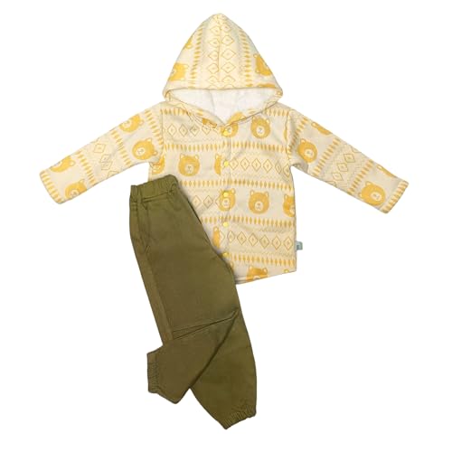 طقم مكون من سويت شيرت بغطاء للرأس واكمام طويلة وبنطلون مطبوع عليه دب، طقم من قطعتين سويت شيرت بغطاء للراس واكمام طويلة وبنطلون للاولاد (عبوة من قطعتين)
