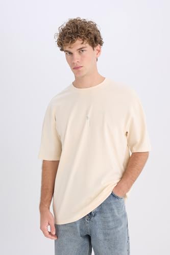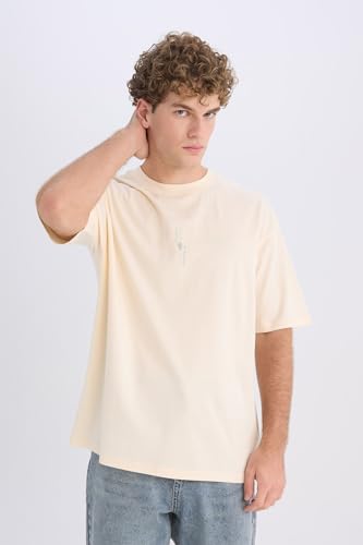 تي شيرت للرجال بقصة ضيقة ورقبة دائرية ضيقة واكمام قصيرة D6776AX