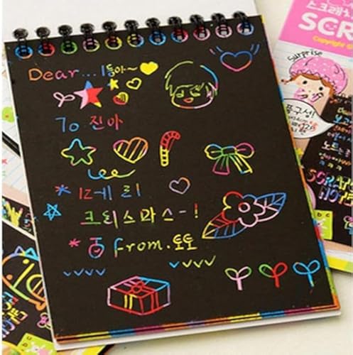 - يكشف خدش الورق باستخدام أداة الرسم المتوفرة عن ألوان نابضة بالحياة تحتها. يعد رسم هذه الأوراق نشاطًا ممتعًا للأطفال وسيبقيهم مشغولين