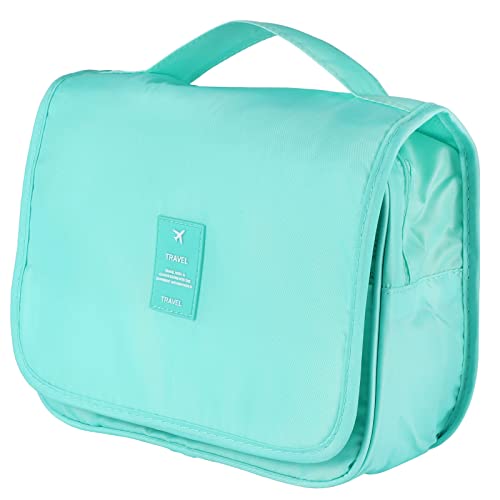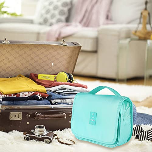 شنطة أدوات زينة محمولة وقابلة للتعليق ومقاومة للماء ومزودة بمقبض وخطاف للنساء والبنات، مناسبة لمستحضرات التجميل والمكياج والسفر من بيمويز، أزرق