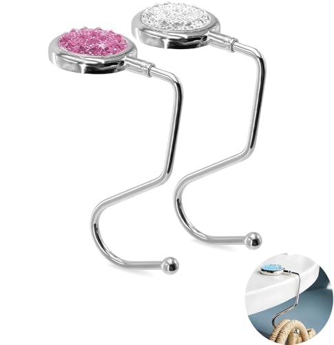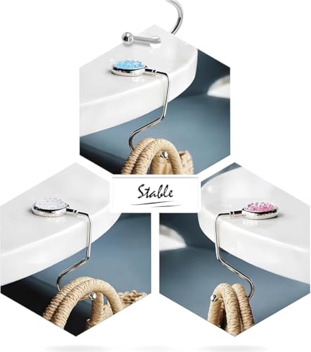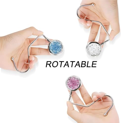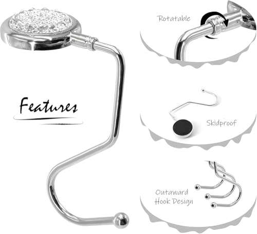- ✨【مادة فاخرة】خطاف الشنطة الخاص بنا مصنوع من خليط معدني من الزنك وسلسلة أحجار الراين الملونة، قرص شماعة شنطة اليد مصنوع من المطاط المضاد للانزلاق الذي يمكن أن يمنع من الانزلاق على الأسطح الملساء أو الصلبة. خطاف الطاولة مزين بأحجار الراين اللامعة للغاية.
