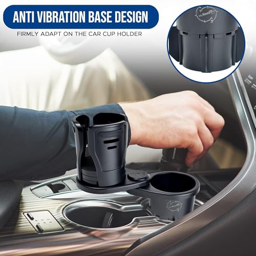 محول حامل أكواب السيارة متعدد الوظائف 2 في 1، أسود اللون، قابل للتوسيع مع منظم طعام وشراب قابل للتعديل، متوفر الآن في متجر Just.4.u.