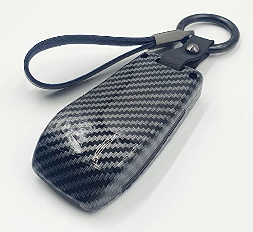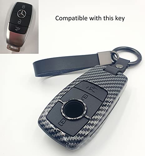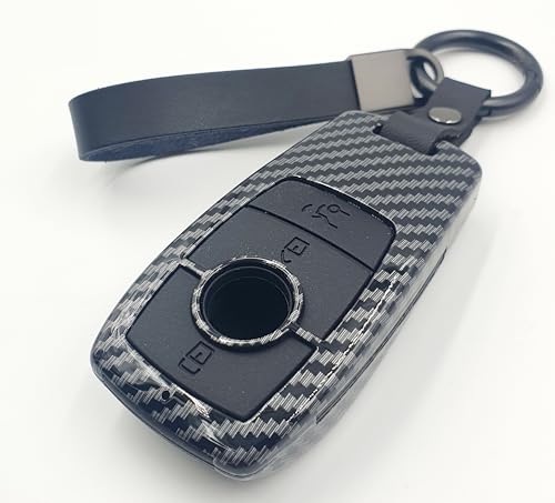 غطاء مفتاح ذكي للسيارة بتصميم صلب بملمس الياف الكربون متوافق مع مرسيدس بنز من بيزتيك®، جراب مفتاح التحكم عن بعد + سلسلة مفاتيح وحلقة تسلق، 3 أزرار (لون أسود)