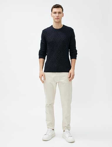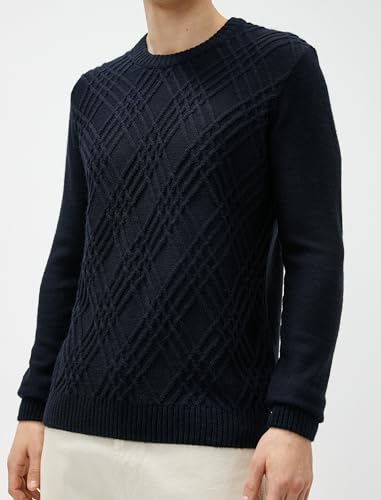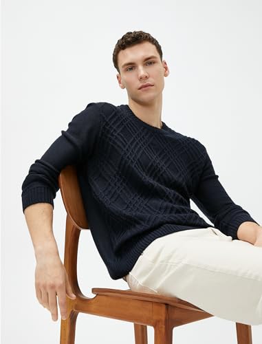 KOTON mens Crew Neck Knitted Patterned Long-Sleeves Pullover
