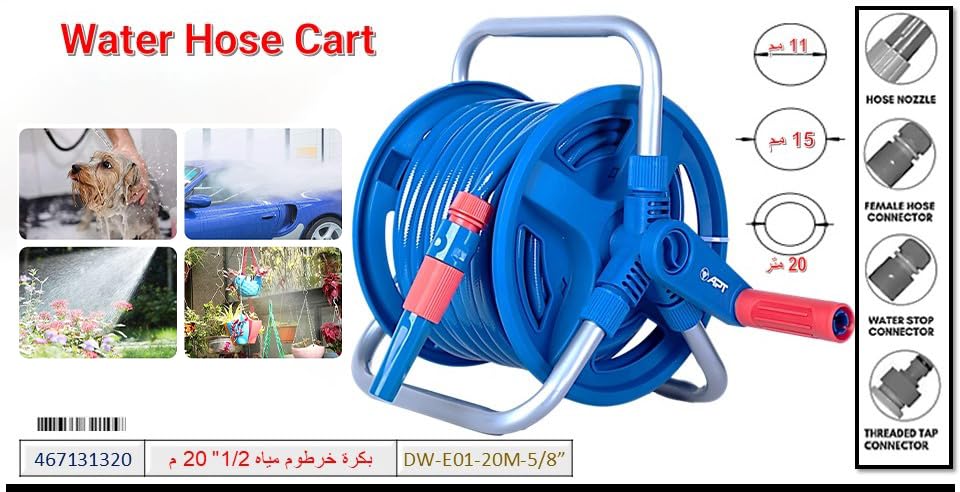 بكرة خرطوم حديقة مزودة بخرطوم بطول 20 متر من سيركل تولز، تتضمن 3 وصلات وفوهة خرطوم 1.3 سم ورشاش