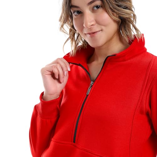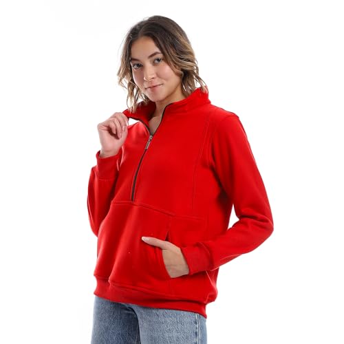 سويت شيرت بغطاء رأس مغلق وسوستة أمامية للنساء