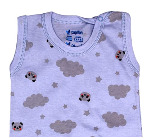سالوبيت داخلي قطن بكباسين بدون اكمام مطبوع عليه دب للاولاد من بابيلون - ازرق فاتح - 0-3 اشهر
