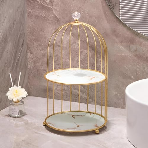 رف تقديم الكب كيك - أبهر ضيوفك بهذا الرف متعدد الاستخدامات المكون من طبقتين لتقديم الكب كيك، وهو مثالي لعرض الحلويات بينما يعمل أيضًا كمنظم أنيق لمستحضرات التجميل والعطور.