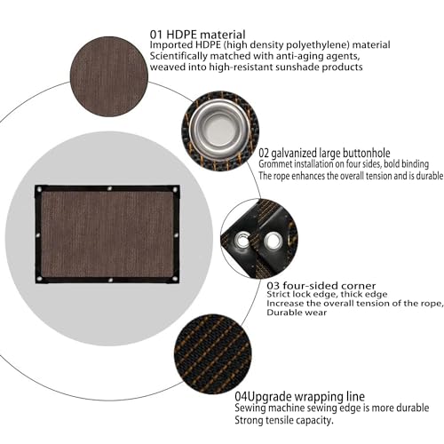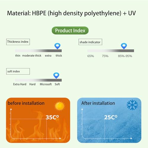 - ☀【مواد عالية الجودة】نسيج شبكة المظلة الخاص بنا مصنوع من البولي ايثيلين عالي الكثافة، والذي يختلف عن شبكة التغطية العادية. قماش واقي من الشمس مع معالجة أكسدة جديدة، يتميز بقوة شد قوية، مضاد للأشعة فوق البنفسجية ومضاد للاهتراء، ويتميز بعمر خدمة طويل. يسمح بتجديد الهواء وطرد الهواء الساخن، ويمرر قطرات الماء.