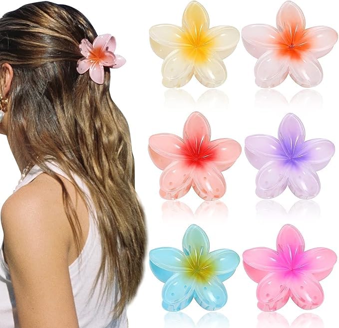 - التصميم: مشابك شعر جميلة بألوان متدرجة تتميز بتصميمات بتلات رقيقة مع انتقالات ألوان نابضة بالحياة من المنتصف إلى الحواف
