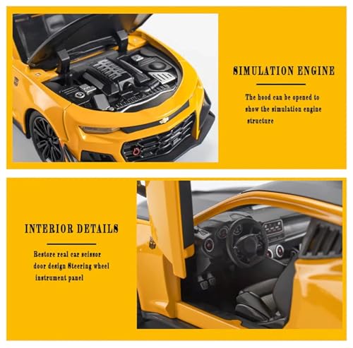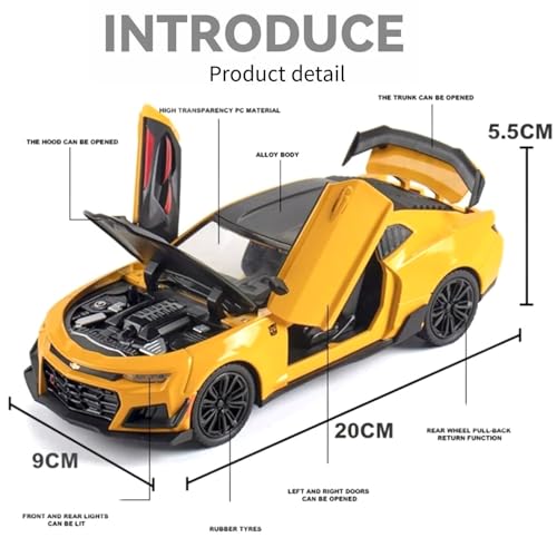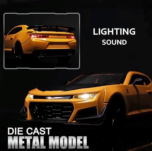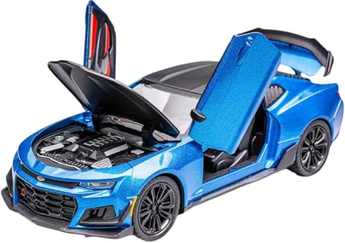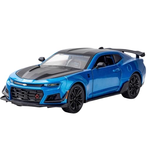 نموذج سيارة مصبوبة بمقياس 1:24 متوافقة مع موديل كامارو، أبواب سيارة معدنية قابلة للفتح مع محاكاة الصوت والضوء، مركبة لعبة من خليط معدني للبالغين والأطفال والأولاد والبنات من تويز لاند (أزرق)