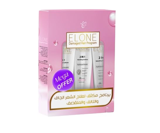 مجموعة العناية بالشعر من ايلون للشعر التالف والملون والمعالج كيميائياً شامبو + بلسم + كريم بلو بيل