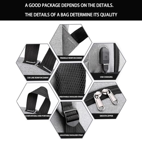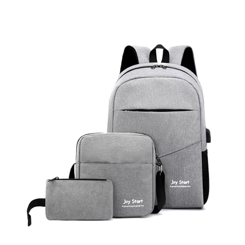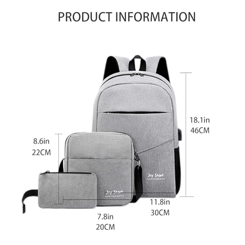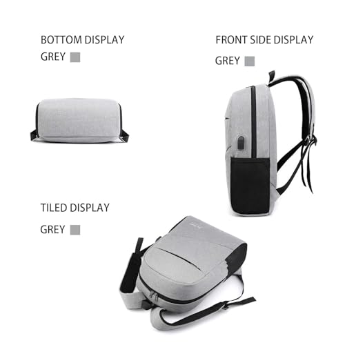شنطة ظهر للاب توب مناسبة للسفر والمدرسة والجامعة مع منفذ شحن USB، تناسب نوت بوك مقاس 15.6 بوصة، للرجال والنساء، لون رمادي من 3 قطع
