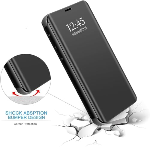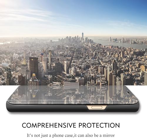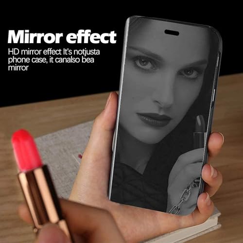 - 【تصميم أنيق】: - تصميم عصري: تصميم مرآة عصري متقن، يجعل موبايلك يبدو مميزًا ورائعًا. يتميز الجراب القابل للطي بمرآة عاكسة بتصميم فاخر ورفيع، لأن المرآة مطلية بطبقة لامعة يمكن استخدامها كمرآة مكياج.