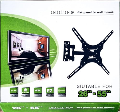حامل تلفزيون يثبت على الحائط بحركة كاملة من روك ار كيه لتلفزيونات LED LCD مقاس 26-55 بوصة، امالة ودوران قابلين للتعديل، حتى 60 باوند (26-55 انش)