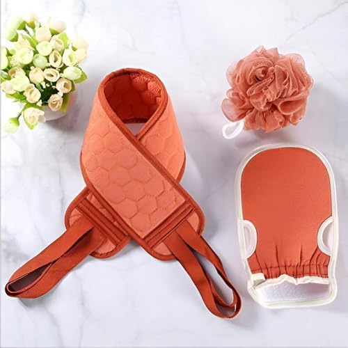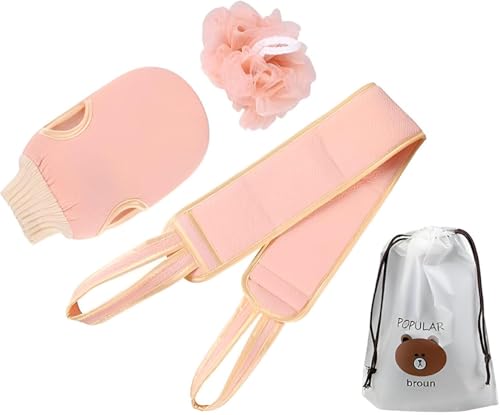 فرش الجسم، من 3 قطع لتنظيف الجسم والظهر للحصول على تجربة استحمام منعشة، تتضمن وسادة تقشير سهلة التنظيف، مناسبة للرجال والنساء (وردي)