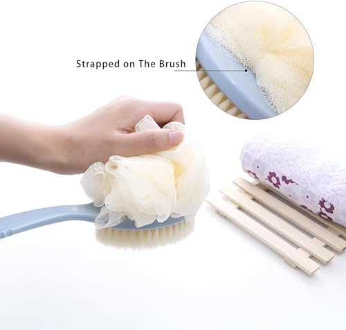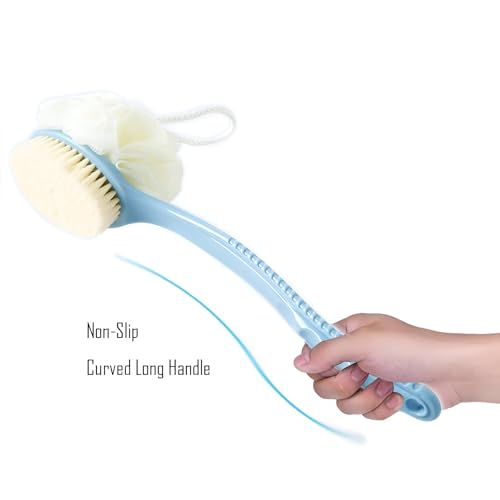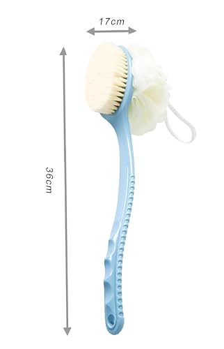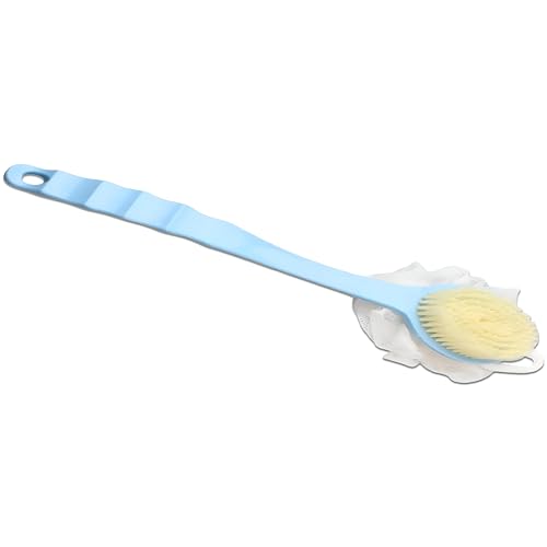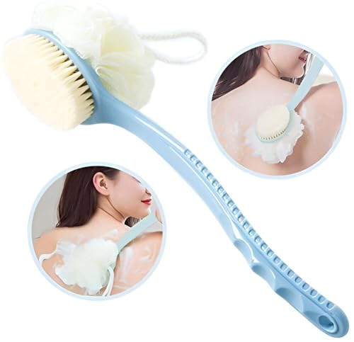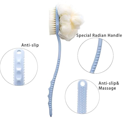 فرشاة استحمام ذات مقبض طويل ومزدوجة الجوانب لتنظيف الجسم والظهر بلطف: تتميز بشعيرات ناعمة وتصميم مريح ووصول محسن لتنظيف شامل وتحسين النظافة. (فرشاه ازرق)