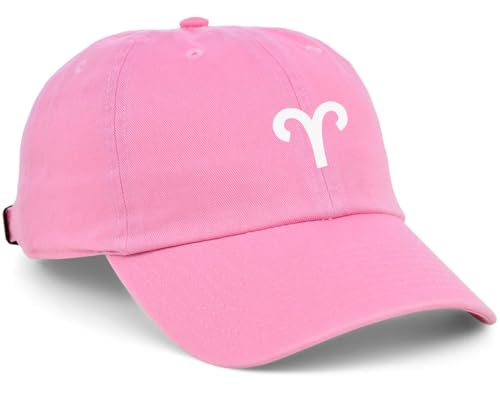 كاب بينك مطبوع باشكال مميزة، مطبوع على علامة زودياك الخاصة بك (برج الحمل)، باللون الابيض للجنسين، زهري