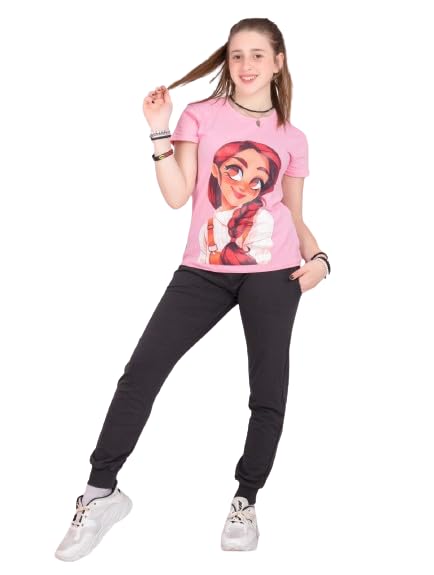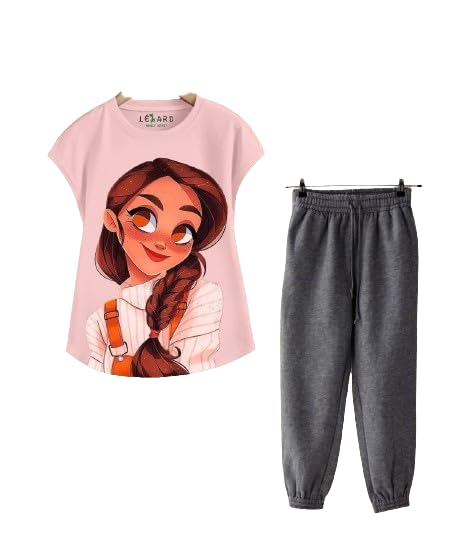ترنج بناتي تيشرت بينك وبنطلون رصاصي