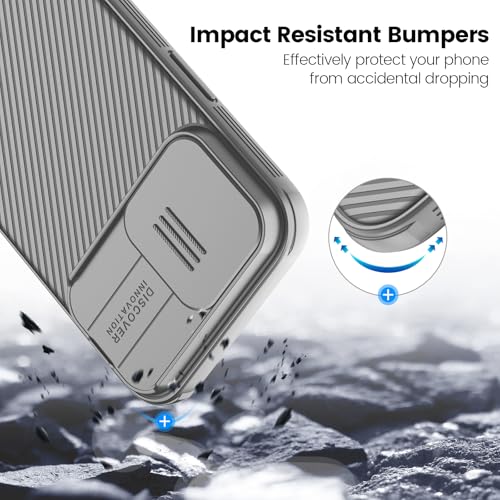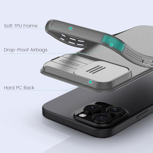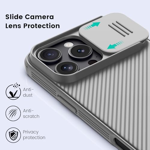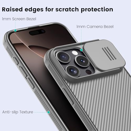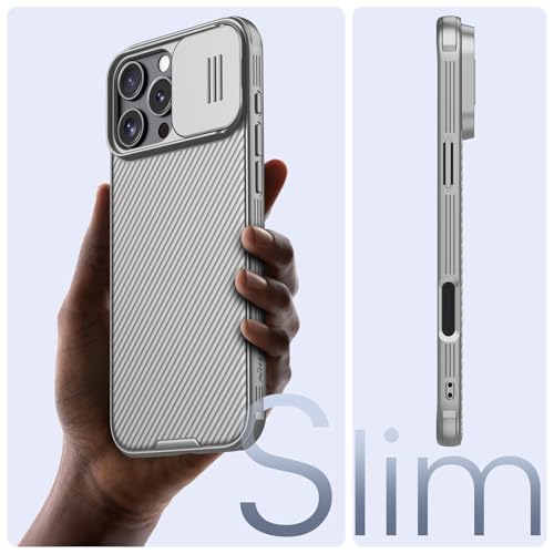 نيلكن جراب حماية لموبايل ايفون 16 برو ماكس مع غطاء كاميرا منزلق [حماية مطورة لعدسة الكاميرا] رفيع مضاد للصدمات 6.9 بوصة رمادي تيتانيوم بولي يوريثين حراري من البولي كربونات