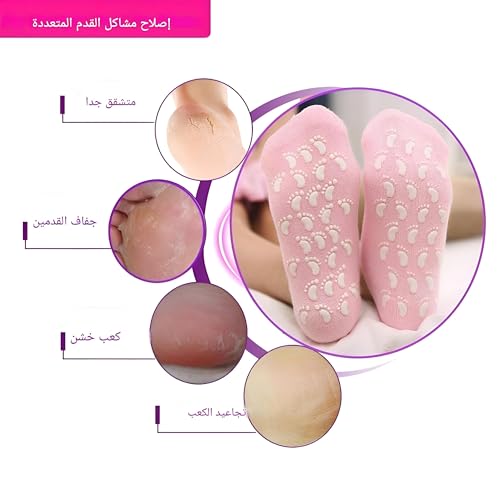 - تتميز جوارب السبا الجل ببطانة جل مصممة بشكل فريد وهي ليست فعالة فحسب، بل مريحة أيضًا. غني بفيتامين E والزيوت المعدنية، فهي توفر رطوبة عميقة للمناطق الأكثر جفافًا في قدميك، مما يضمن علاجًا فعالًا للكعب المتشقق والجلد الخشن. تم تصميم التركيبة الغنية لتلبية جميع أنواع القدم، مما يجعلها خيارًا مثاليًا لأي شخص يسعى إلى تعزيز روتين العناية بالقدم.