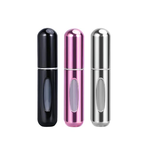 زجاجات عطر قابلة لإعادة التعبئة - عبوات 5 مل باللون الأسود والفضي والوردي لسهولة الحمل في شنطتك اليدوية أو جيبك - مجموعة من 3 قطع