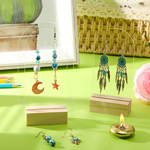حامل عرض حلقان من الاكريليك للبيع بالتجزئة، حوامل عرض مجوهرات بتصميم قوس سادة وبتصميم مجوف مع قواعد خشبية لعرض حلقان البريمة والحلقان المتدلية، 48 قطعة