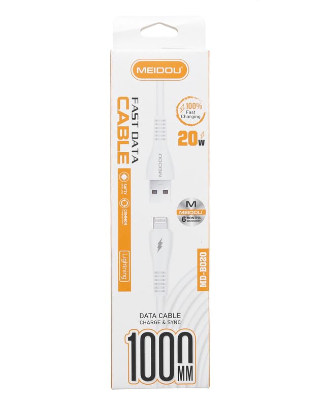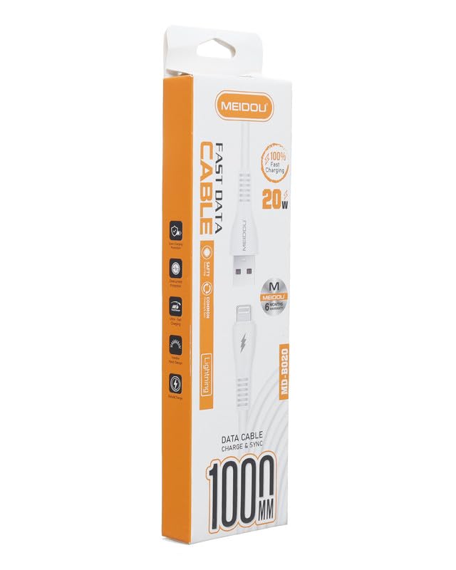 كابل بيانات سريع لنوع C يدعم الشحن بقدرة 20 وات ويبلغ طوله 1 متر من ام اي اي دى او يو، لون أبيض، موديل MD-B020