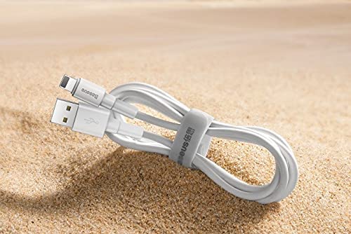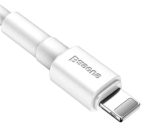 كابل لايتنينج للشحن السريع من باسيوس لاجهزة ابل ايفون 6 - 7 - 8 بلس - اكس - اس ماكس - ار - 11 برو مع طاقة مخرجة قوية 2.4 امبير شحن سريع للاجهزة بنظام تشغيل اي او - 1 متر - ابيض