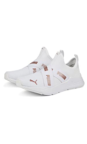 حذاء رياضي للجري بتصميم أربطة سهل الارتداء للبنات من بوما، أبيض