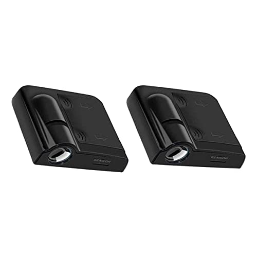 مصابيح LED ترحيبية لباب السيارة، مصابيح ليزر لاسلكية، بروجكتور يعكس لوجو السيارة بدون توصيلات او حفر بالمثقاب مناسب لجميع الموديلات، قطعتين (اسود)