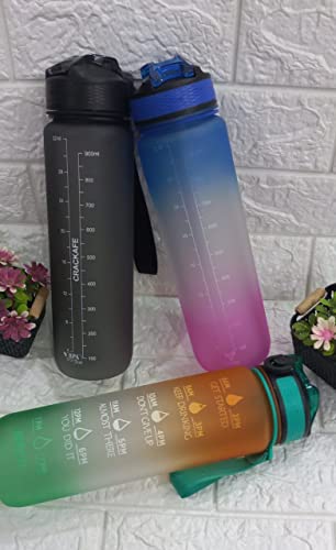 زجاجة مياه مطبوعة بعبارات تحفيزية مع مؤشر للوقت، سعة 1 لتر