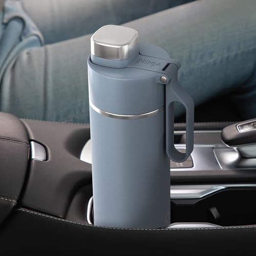 زجاجة مياه مع قارورة سعة 700 مل بغطاء مانع للتسرب، مصممة للمشروبات الغازية والساخنة والباردة، للسفر والرياضة، زجاجة من الفولاذ المقاوم للصدأ معزولة ثلاثية من نينجا ثيرستي، أزرق، DW2401EUUKBL