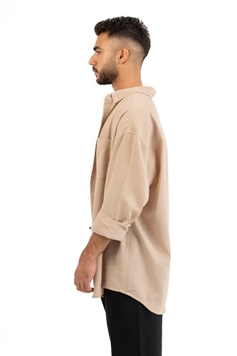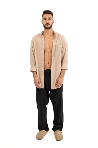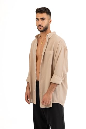 قميص رجالي بقصة عادية مصنوع من الكتان بأكمام طويلة وتصميم حديث استك عبوة قطعة واحدة