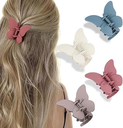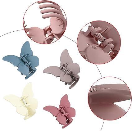 - ثبات قوي - مقابض شعر مضادة للانزلاق: تتميز مشابك الشعر الفرنسية على شكل فراشة بتصميم مخلب بسيط، وهي سهلة الارتداء والخلع. مخلب الشعر الفرنسي على شكل فراشة مناسب لتسريحة ذيل الحصان والشعر الطويل والشعر الكيرلي ومشابك الفراشة البلاستيك الفرنسية هي زينة رقيقة للشعر. مشابك شعر لطيفة مناسبة للبنات والنساء.