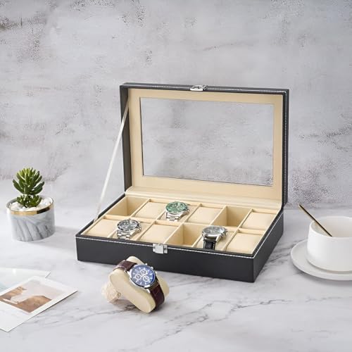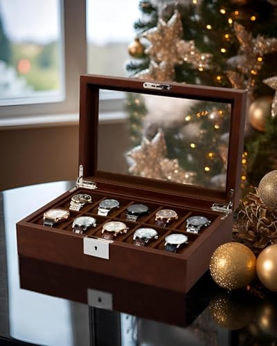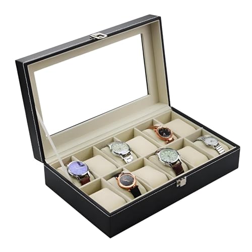 تخزين الساعات - اكتشف صندوق العرض الأنيق المكون من 12 حجرة مع غطاء زجاجي أصلي، والمصمم لتنظيم ساعاتك ويكون بمثابة الهدية المثالية لعشاق الساعات